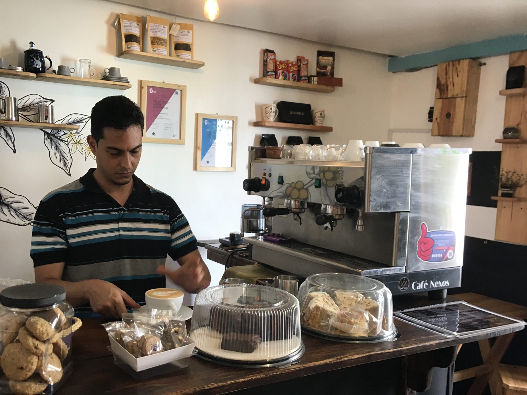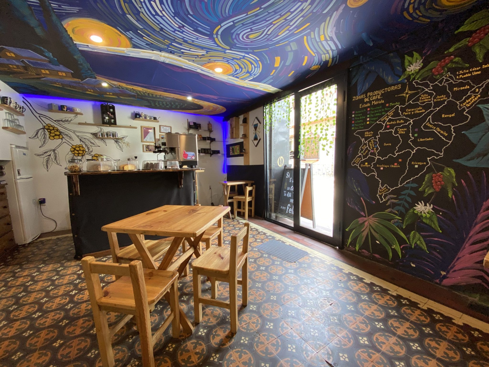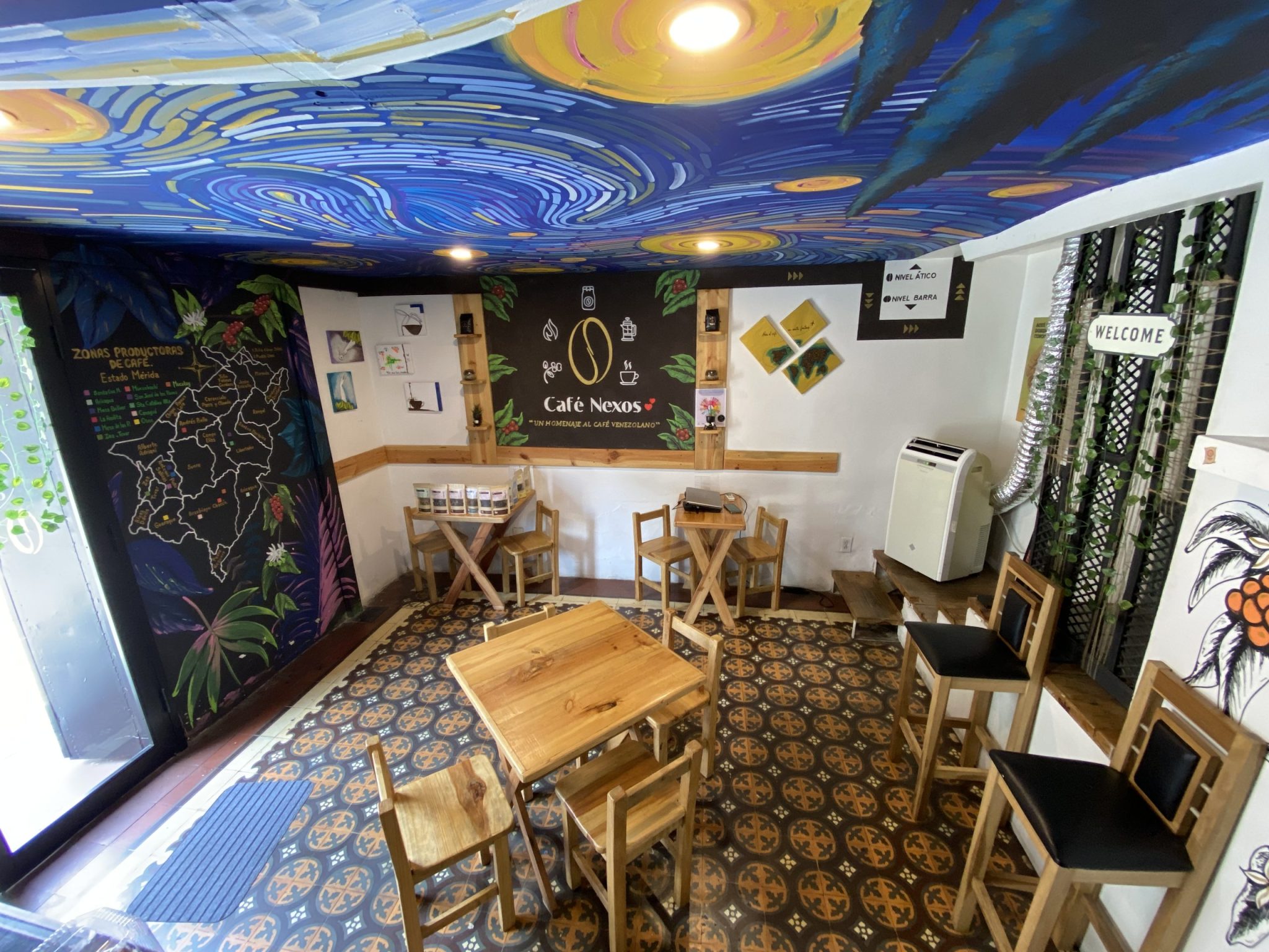 Café Nexos se encuentra en el casco histórico de la ciudad de Mérida, en una hermosa casa colonial de época. Podrás reconocerlo por sus murales y disfrutar de obras de arte desarrolladas por artistas escultores locales, lo que genera un ambiente y un culto hacia el café de nuestra región y el café venezolano.